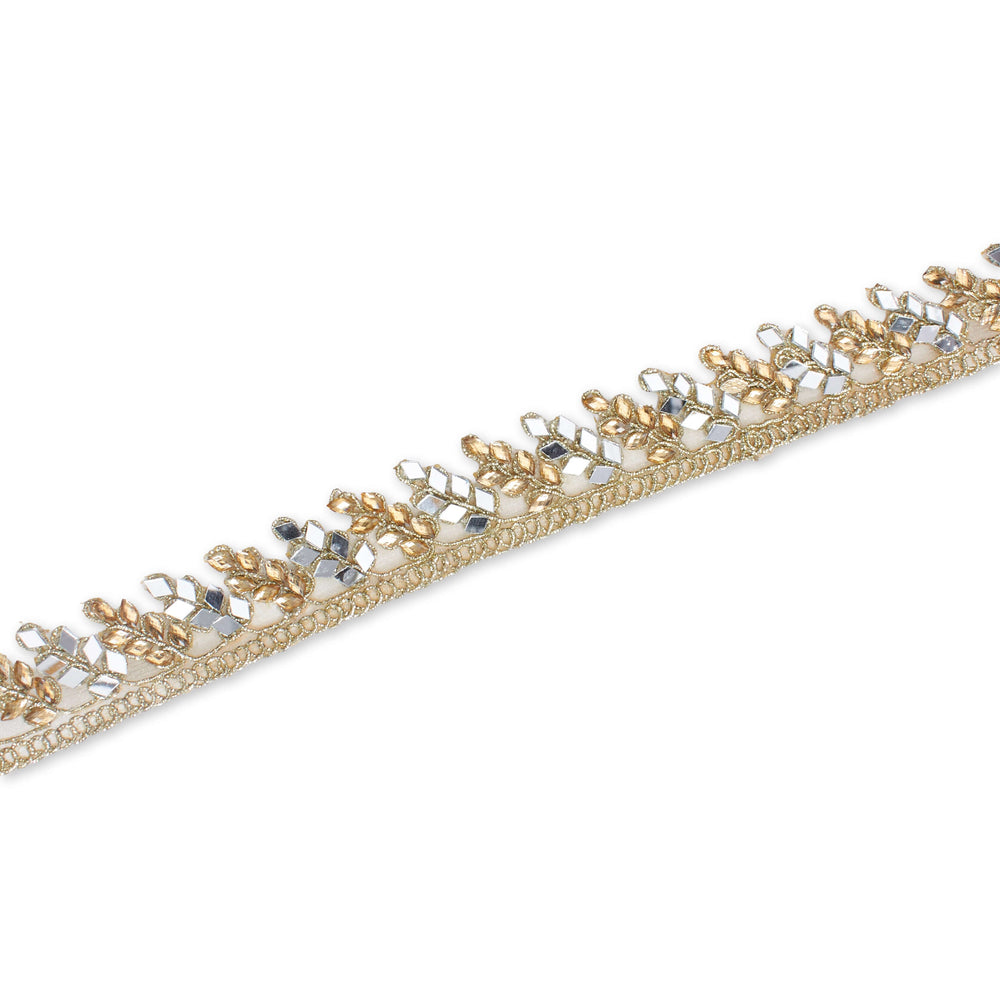 1 Inch Leafy Rhinestone Metallic Cording On Mesh Trim can be used to embellish clothing or decor for your space. Decorate apparel like dresses, sarees, button down shirts, and more with this trim. Furthermore, use 1 Inch Leafy Rhinestone Metallic Cording On Mesh Trim to finish decor projects such as furniture upholstery, curtains, and table covers.