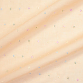 Dotted Floral Embroidery On Voile fabric is a lightweight, soft, and slightly sheer fabric. Sourced from 100% polyester fibers, this fabric is woven in a plain style weave and features embroidered floral patterns with eyelets stylishly placed throughout the fabric. Measuring 43/44 inches wide, this material is 0.18 millimeters thick, has an 80 GSM, and weighs approximately 3 ounces per linear yard.