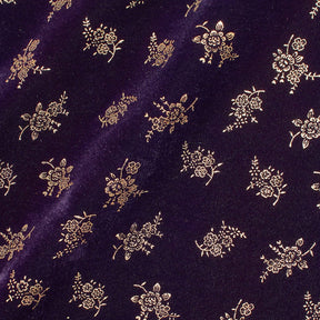 Floral Metallic Embroidered Micro Velvet is a soft, thick, and medium to heavyweight fabric. Sourced from 100% polyester fibers, this fabric features a raised pile texture that is woven into a knit backing, and displays a metallic floral embroidered pattern. Measuring 44/45 inches wide, Floral Patterned Micro Velvet fabric is 0.75 millimeters thick, has a 175 GSM, and weighs approximately 9.9 ounces per linear yard.