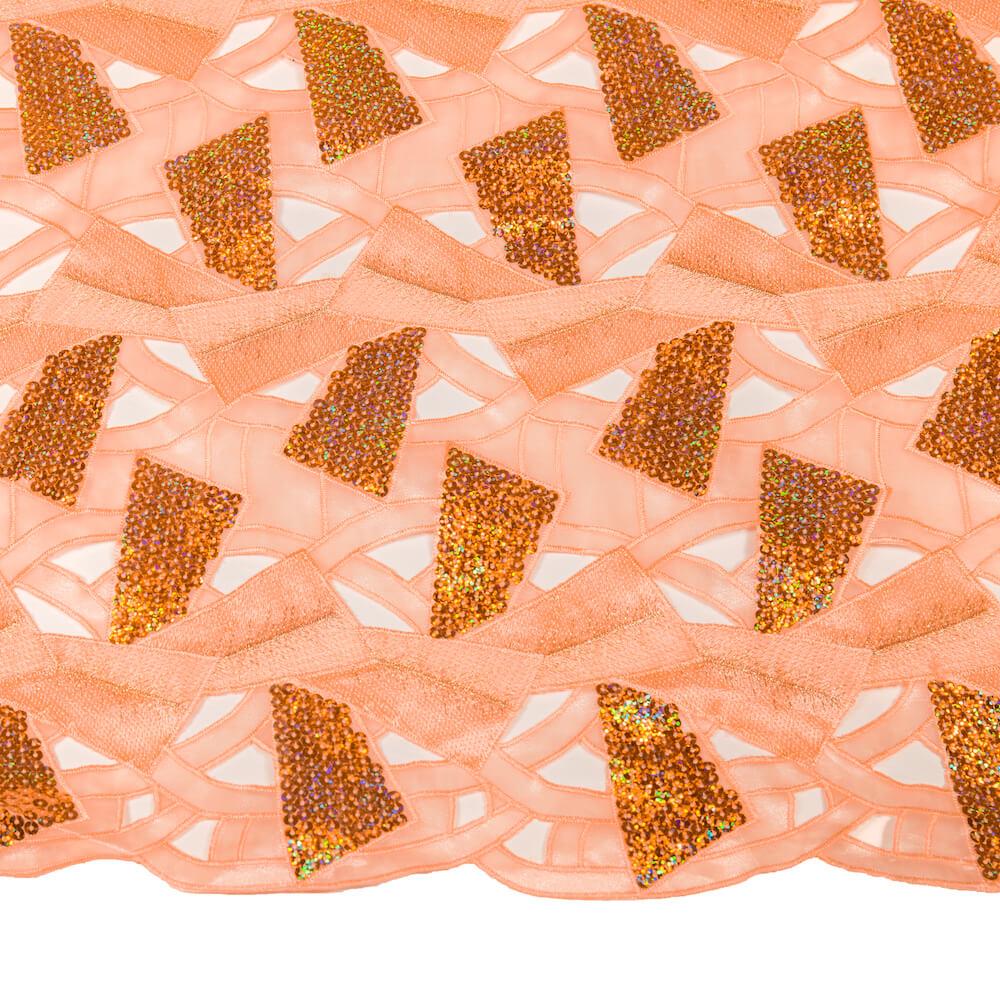 This beautiful Geometric Sequin Lace fabric measures 50" wide and is covered in gorgeous sequins. Geometric Sequin Lace fabric is made from 100% polyester and weighs approximately 10 oz per linear yard. Geometric Sequin Lace fabric features sequins arranged in a quadrangular shape on polyester lace fabric.
