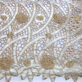 Peach hand cut embroidery organza lace with sequins is 52" wide and 100% polyester. Use this to design a dress, or decorate your tables/chairs to create elegant decor that your guests will never forget. It can be used for evening gowns, dresses, draping, costumes, table covers, table runners, chair covers, and photo shoots! A versatile lace you can style in many ways, now available at a great price!