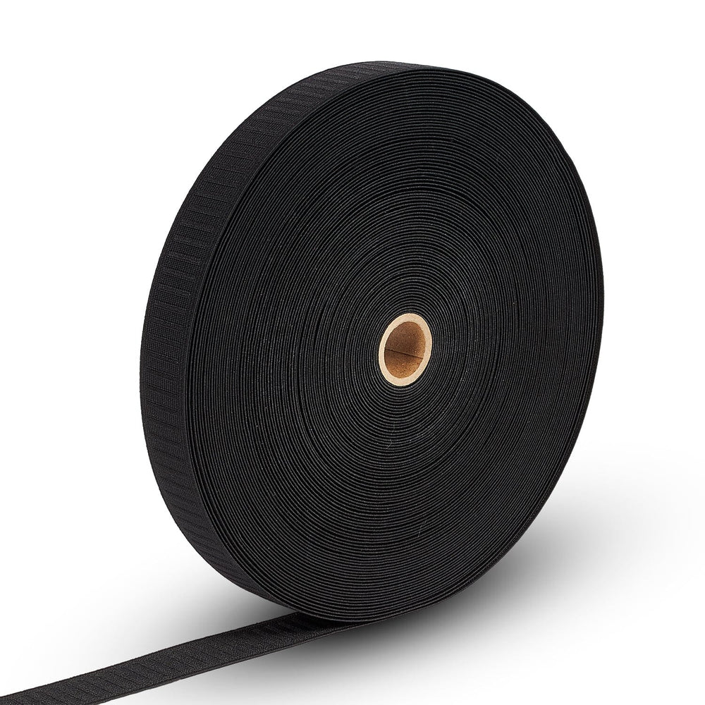 1.25 Inch Flat Non-Roll Woven Elastic is a durable, medium-width, and stretchy notion that can be added to accessories, décor, or clothing to make them stretch and fit perfectly. Sourced from a blend of polyester and rubber, 1.25 Inch Flat Non-Roll Woven Elastic can stretch up to 60% horizontally from its original size, repeatedly without it losing elasticity. Furthermore, this type of elastic is called non-roll, meaning it does not get narrow or fold when it is stretched out. Measuring 1.25 inches wide, 1.25 Inch Flat Non-Roll Woven Elastic weighs 0.84 ounces per linear yard, is 1.55 millimeters thick, and comes in two bold colors, black and white. Unlike other elastics, this one does not lose stretch or resiliency when it is sewn onto fabric, and it is sold by the yard.