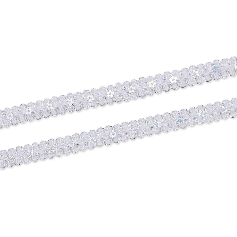1/2 Inch Daisy Scroll Scalloped Holographic Metallic Corded Sequin Trim (25 Yards)