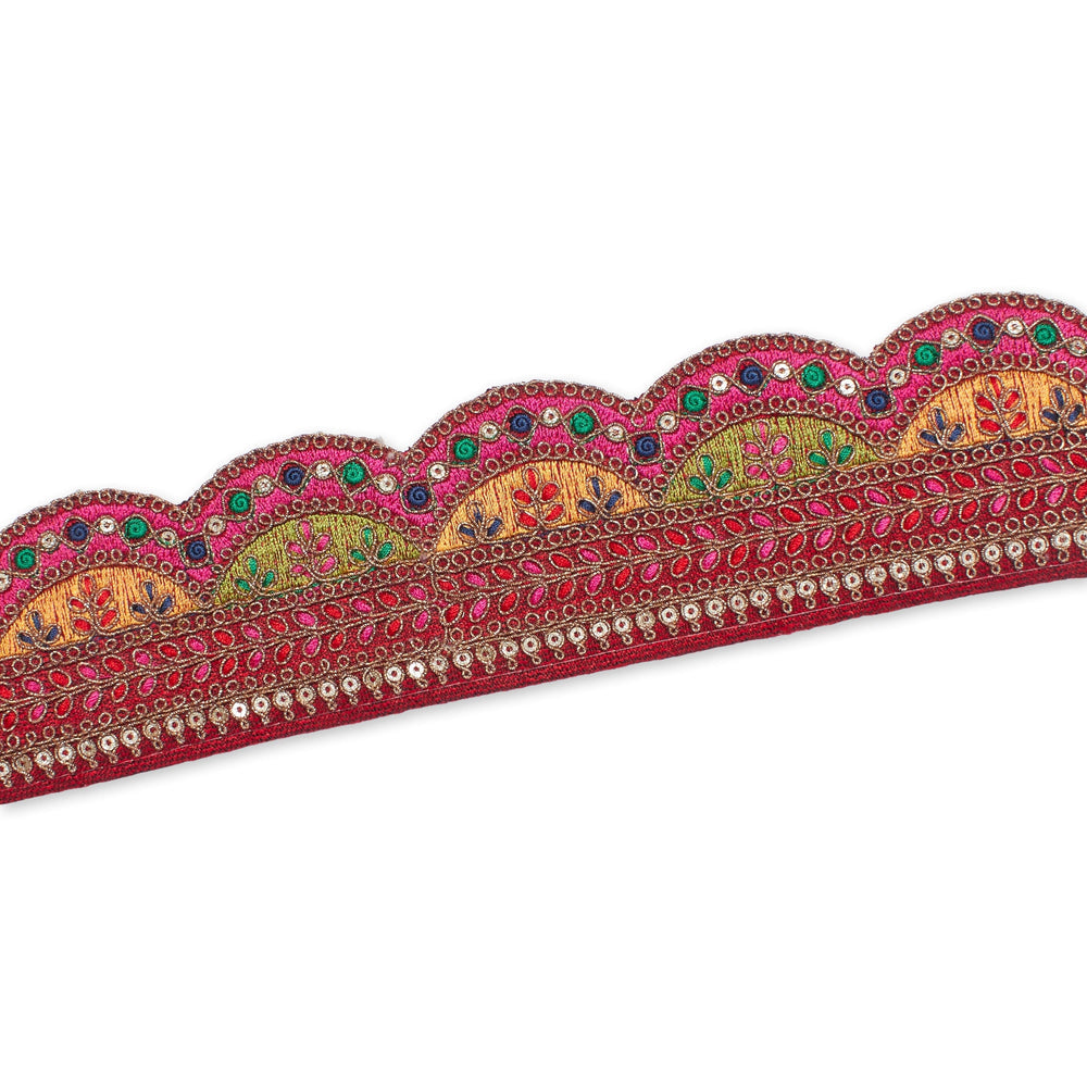 2.25 Inch Multicolor Metallic Leaf Sequin Corded Woven Embroidered Trim can be used to decorate the edges of apparel or decor. Embellish and finish dresses, sarees, button down shirts, and other apparel with this trim. Additionally, 2.25 Inch Multicolor Metallic Leaf Sequin Corded Woven Embroidered Trim can be used to adorn decor like furniture upholstery, curtains, and table covers.