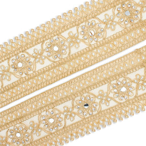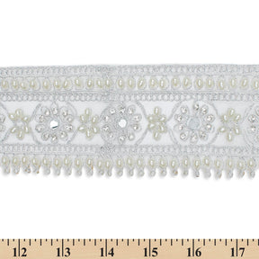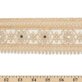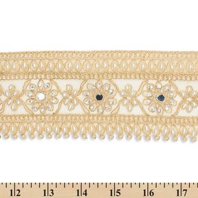 Shop 2.5 Inch Daisy Flower Rhinestone Beaded Metallic Cording On Mesh Lace Trim online at wholesale prices today!