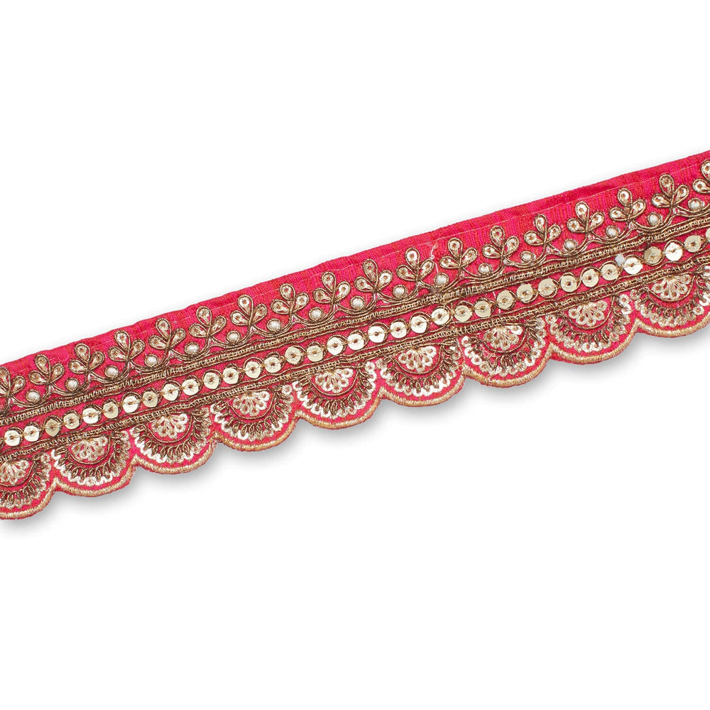 2 Inch Regal Gold Metallic Sequined Cording On Plain Woven Trim SV581410 Fuchsia A2