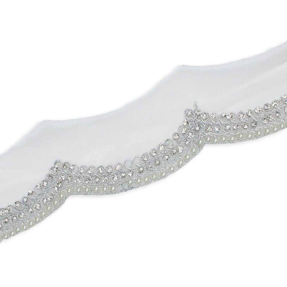 3 Inch Scalloped Regal Rhinestones Beads Metallic Cording On Polyester Mesh Trim SV581900 Silver A9