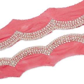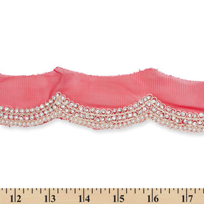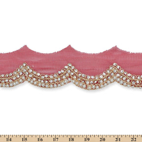 3 Inch Scalloped Regal Rhinestones Beads Metallic Cording On Polyester Mesh Trim SV581898 Red A1