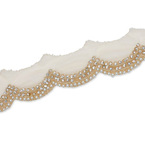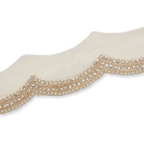 3 Inch Scalloped Regal Rhinestones Beads Metallic Cording On Polyester Mesh Trim SV581899 Champagne A1