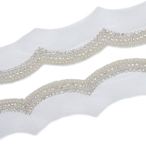 3 Inch Scalloped Regal Rhinestones Beads Metallic Cording On Polyester Mesh Trim SV581900 Silver A1