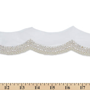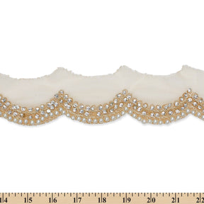 3 Inch Scalloped Regal Rhinestones Beads Metallic Cording On Polyester Mesh Trim SV581909 Off White A1