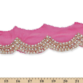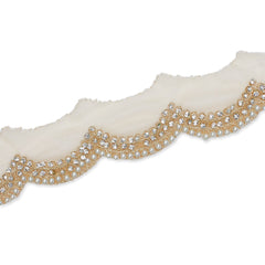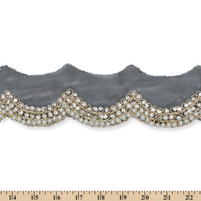 Shop 3 Inch Scalloped Regal Rhinestones Beads & Metallic Cording On Polyester Mesh Trim online at wholesale prices today!