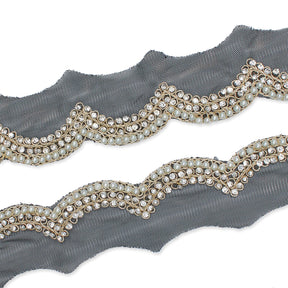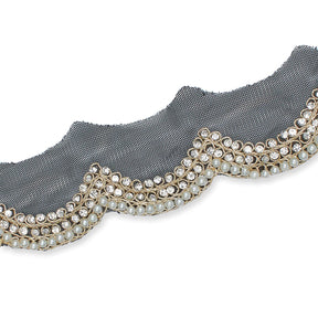 3 Inch Scalloped Regal Rhinestones Beads Metallic Cording On Polyester Mesh Trim Group