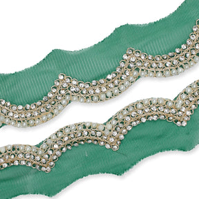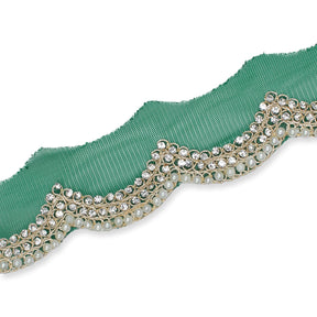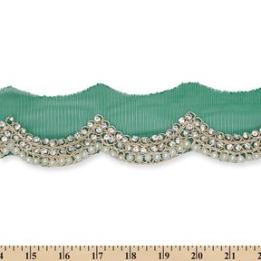 3 Inch Scalloped Regal Rhinestones Beads Metallic Cording On Polyester Mesh Trim SV581906 Hunter Green A1