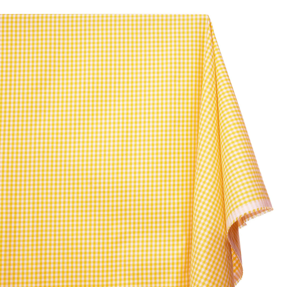 Choose between 2 mm, 4 mm, or 7 mm Gingham Check Plaid Polyester Cotton Poplin—ranging from the smallest, fine checks to larger, bolder square patterns.