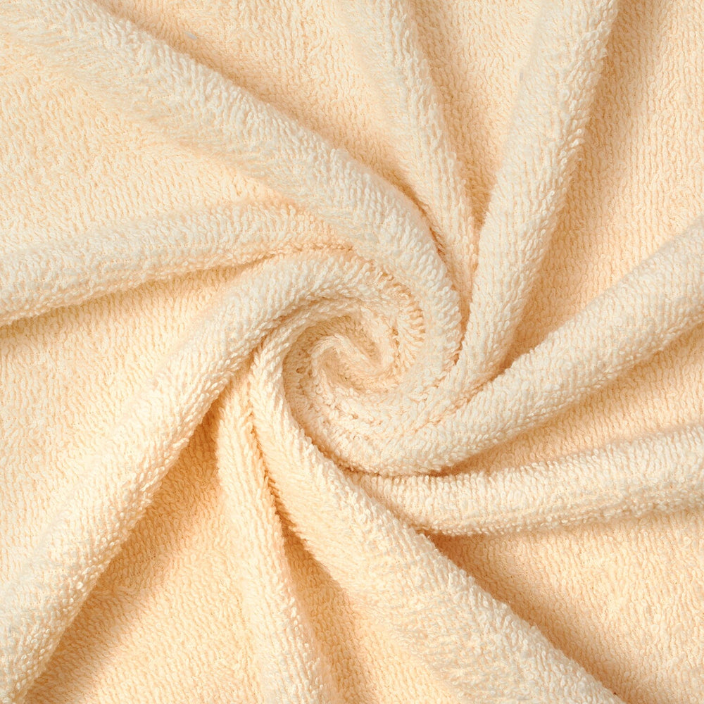 9 oz Cotton Terry Cloth fabric is a soft and absorbent fabric that features a towel like raised texture across the entire fabric on both sides. Woven in a terry style weave with 100% natural and hypoallergenic cotton fibers, 9 oz Cotton Terry Cloth fabric is made by weaving a single weft thread through two separate warp threads. This weave structure creates soft loops, also known as piles, that protrude from the base of the 9 oz Cotton Terry Cloth fabric and increase absorbency. 9 oz Cotton Terry Cloth fabric measures 45 inches in width, is 1.5 millimeters thick, has a 300 GSM, and weighs approximately 13 ounces per linear yard. A medium to heavy weight, double-sided thick fabric, 9 oz Cotton Terry Cloth has a full, heavy drape when it is hung.