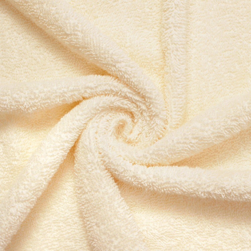 9 oz Cotton Terry Cloth fabric is a soft and absorbent fabric that features a towel like raised texture across the entire fabric on both sides. Woven in a terry style weave with 100% natural and hypoallergenic cotton fibers, 9 oz Cotton Terry Cloth fabric is made by weaving a single weft thread through two separate warp threads. This weave structure creates soft loops, also known as piles, that protrude from the base of the 9 oz Cotton Terry Cloth fabric and increase absorbency. 9 oz Cotton Terry Cloth fabric measures 45 inches in width, is 1.5 millimeters thick, has a 300 GSM, and weighs approximately 13 ounces per linear yard. A medium to heavy weight, double-sided thick fabric, 9 oz Cotton Terry Cloth has a full, heavy drape when it is hung.