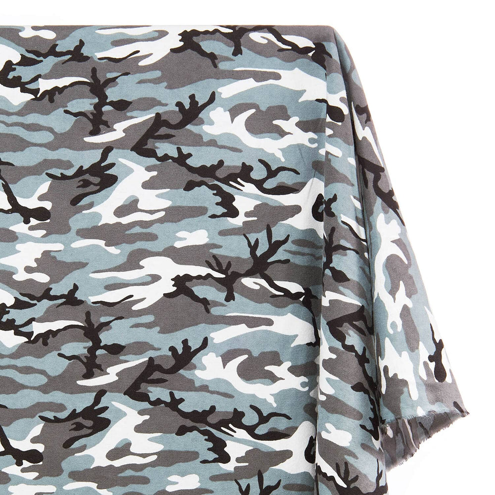 Camouflage Printed Cotton Flannel fabric is a soft, lightweight, and insulating textile that features an intricate, camouflage design. Derived from 100% cotton fibers, this material is hypoallergenic, meaning it will cause fewer allergic skin reactions than other, synthetically made fabrics. Woven in a plain weave style, Camouflage Printed Cotton Flannel is also brushed to form a napped surface, which gives this fabric a comfortable texture, in addition to temperature-regulating properties. Measuring 44/45 inches in width, this fabric is 0.44 millimeters thick, has a 135 GSM, and weighs approximately 5.4 ounces per linear yard. Additionally, Camouflage Printed Cotton Flannel features a camo pattern that repeats every 8.5 inches vertically and every 22.5 inches horizontally.