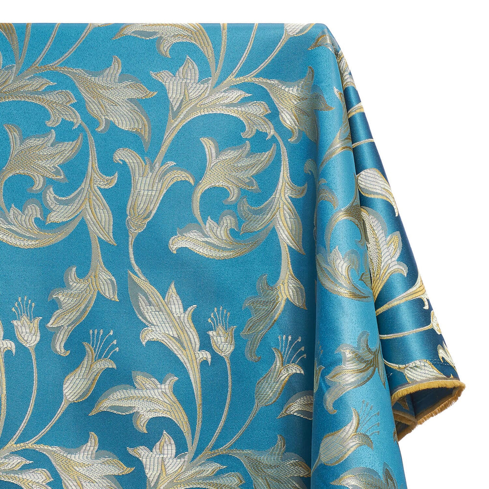 Extra Wide Bloom Upholstery Jacquard Fabric SV571036 1 Turquoise / Gold 4