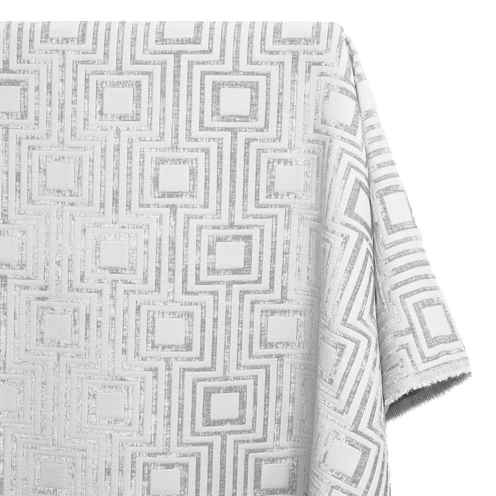 Geometric Chenille Upholstery Brocade Jacquard Fabric SV580318 White / White 1