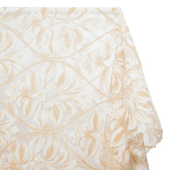 Leafy Bloom Extra Wide Burnout Polyester Rayon Damask Jacquard On Voile is a translucent, subtly textured, and lightweight fabric. Made from a blend of 60% rayon and 40% polyester, this material displays a floral-damask, burnout design, where some areas more see-through than in other places. The elegant, cross grain motif on Leafy Bloom Extra Wide Burnout Polyester Rayon Damask Jacquard On Voile fabric feature a pattern repeat of 17 inches vertically (measured from selvedge to selvedge), and 8.5 inches horizontally (measured parallel to the selvedge). Measuring an extra wide 118/120 inches, this textile is 0.15 millimeters thick, has a 50 GSM, and weighs approximately 5.5 ounces per linear yard.