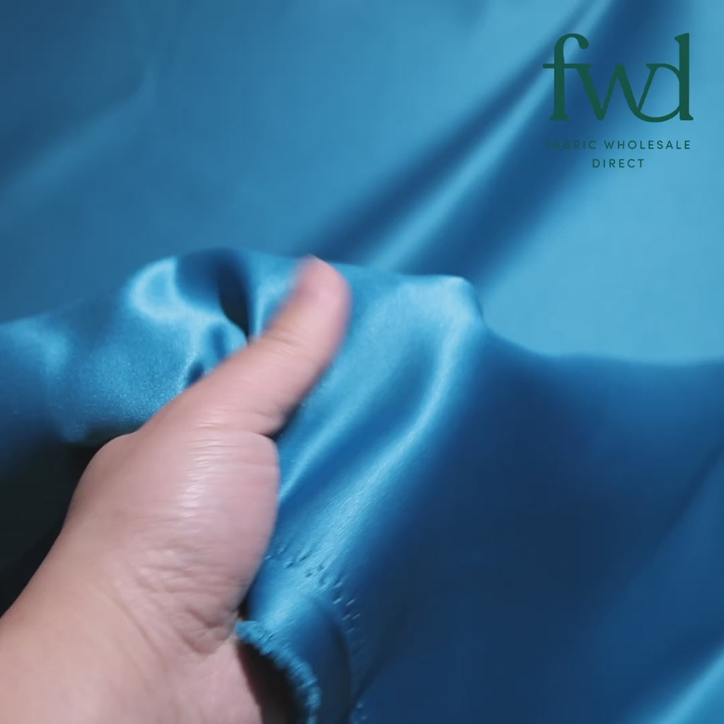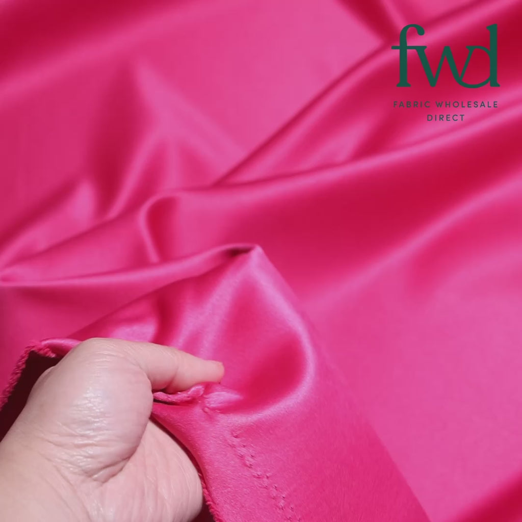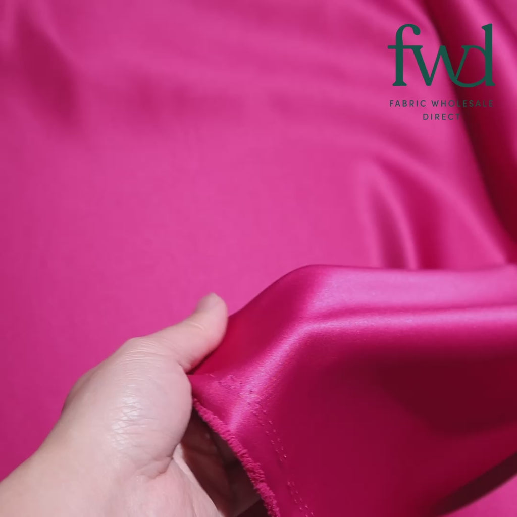 Matt Satin fabric is an elegant, two-sided, medium weight fabric. Woven similarly to peau de soie in a satin style weave, Matte Satin fabric is composed of 100% polyester fibers. Durable and wrinkle resistant, Matte Satin fabric has two sides, a smooth side and a textured side. Matte Satin fabric is minimally lustrous and has a relaxed drape and flow when hung. Available in a variety of bold and vivid colors, Matte Satin fabric is great for apparel and decor applications.