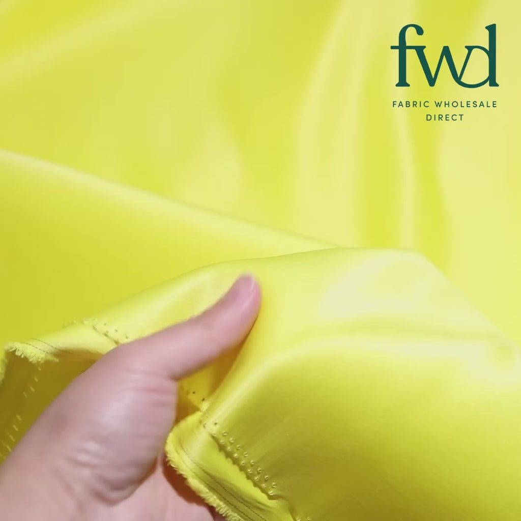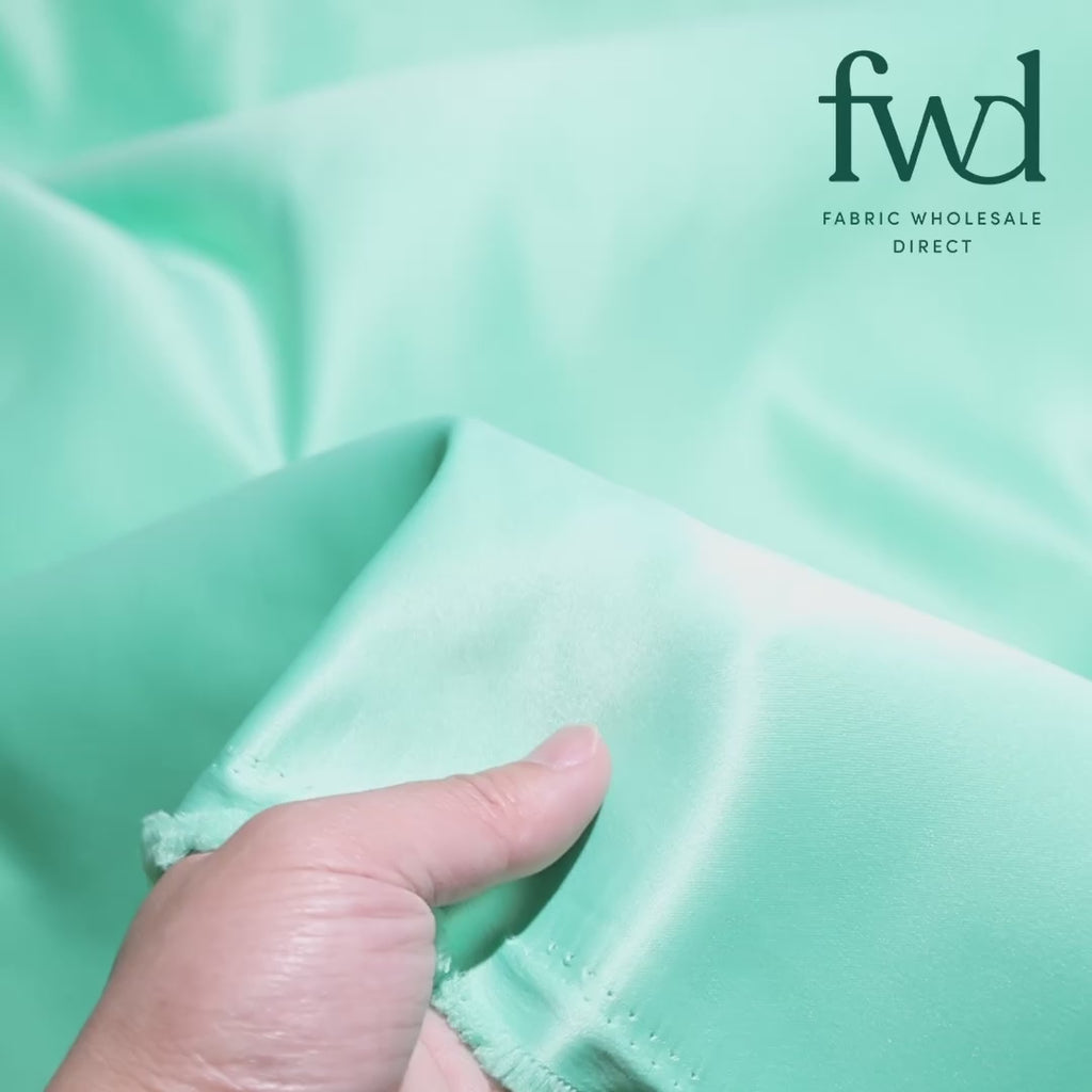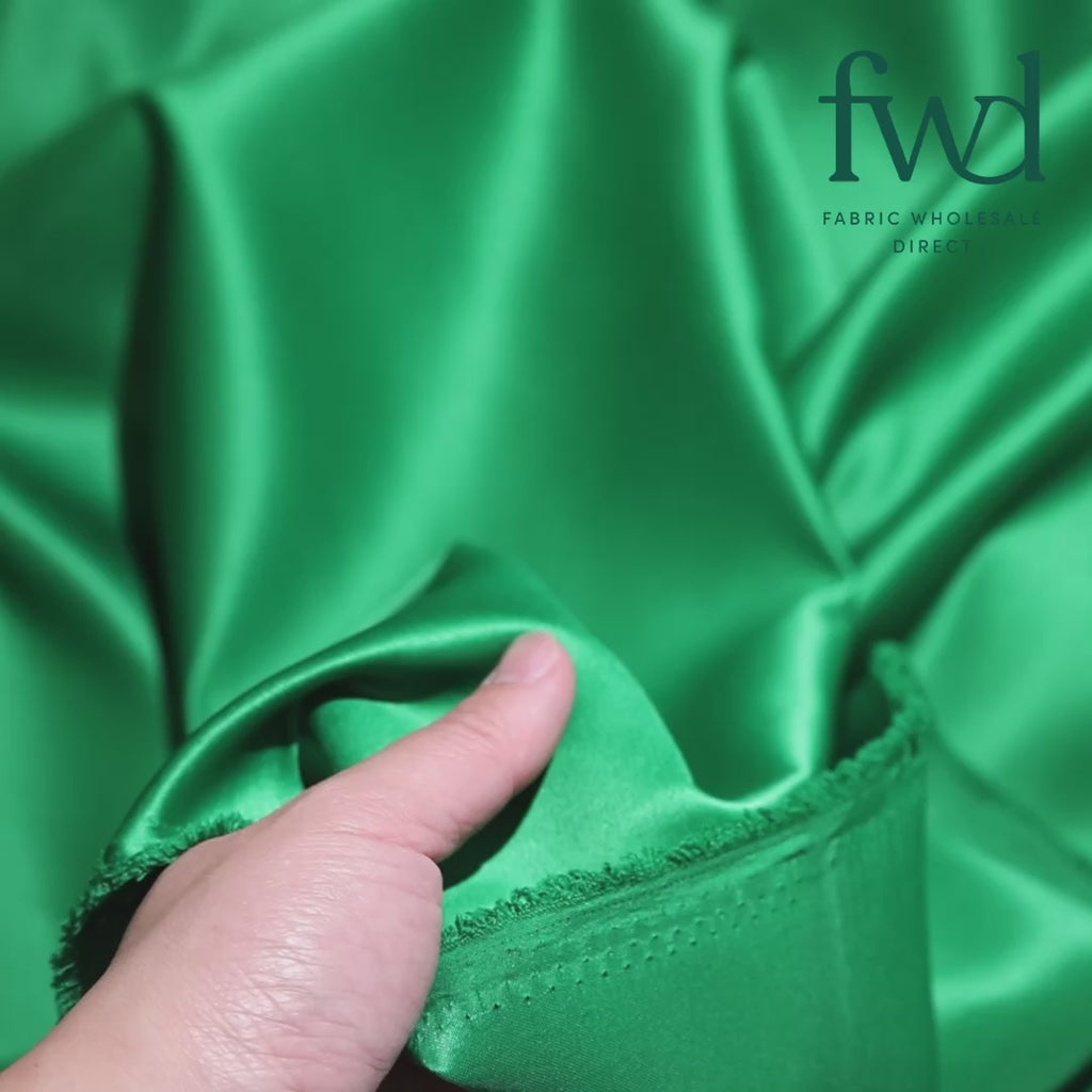 Matt Satin fabric is an elegant, two-sided, medium weight fabric. Woven similarly to peau de soie in a satin style weave, Matte Satin fabric is composed of 100% polyester fibers. Durable and wrinkle resistant, Matte Satin fabric has two sides, a smooth side and a textured side. Matte Satin fabric is minimally lustrous and has a relaxed drape and flow when hung. Available in a variety of bold and vivid colors, Matte Satin fabric is great for apparel and decor applications.