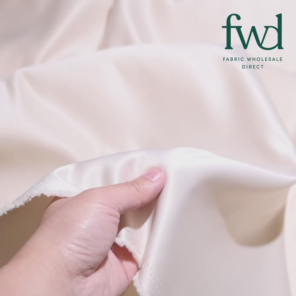 Matte Satin (Peau de Soie) is a subtly shiny, soft, and medium weight fabric. Woven in a satin style weave, this 100% polyester fabric is known for having a slightly lustrous face, smooth, even texture, and elegant drape. Measuring 60 inches wide, Matte Satin (Peau de Soie) fabric is 0.35 millimeters thick, has a 185 GSM, and weighs approximately 8 ounces per linear yard.