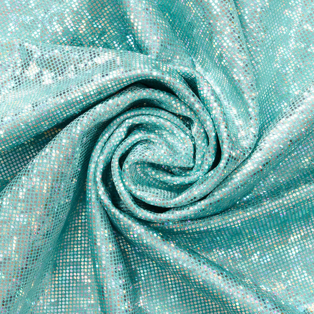 Micro dot hologram tricot foil is a lustrous and stretchy fabric that displays holographic sequins all throughout the fabric. The fabric is durable and can stretch 15% vertically and 15% horizontally because micro dot hologram tricot foil is made with a calculated blend of 80% nylon and 20% spandex. Micro dot hologram tricot foil fabric weighs approximately 11.3 ounces per linear yard, has a 215 GSM, is 0.57 mm thick, and measures 58/60 inches wide. A smooth fabric, micro dot hologram tricot foil is covered in 1.5-millimeter holographic sequins that change color when the fabric is viewed from a different angle. The sequins on micro dot hologram tricot foil fabric are printed on a bold, solid-colored base. Shop micro dot hologram tricot foil online by the yard or in bulk by the roll at wholesale prices!