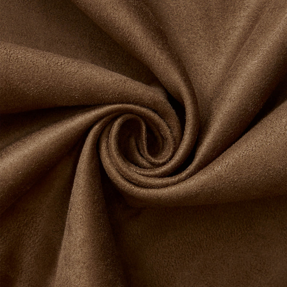 Microsuede fabric is soft, sturdy, and features a brushed, raised texture on the face of the fabric. Made with 100% polyester fibers, Microsuede is woven in a twill-style weave. The twill weaving pattern can be seen on the back side of Microsuede, but the face of the fabric is brushed to form naps to mimic the texture of leather suede. Measuring 60 inches wide, Microsuede fabric is 0.38 millimeters thick, has a 255 GSM, and weighs approximately 13 ounces per linear yard. A medium to heavyweight fabric, Microsuede is durable and has a fluid drape when it's hung.