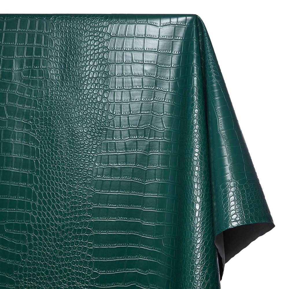 Ottertex® Alligator Vinyl Leather is a heavy-duty, water-resistant, and smoothly textured, lustrous fabric. Extruded from cruelty-free 100% polyvinyl chloride leather, also known as PVC leather, this waterproof material displays an embossed alligator scale pattern on the face of the fabric. The stylish design has a vertical and horizontal pattern repeat of 12 inches respectively. Furthermore, Ottertex® Alligator Vinyl Leather features a 100% polyester knit backing that is soft, and adds extra thickness and protection. Measuring 54/55 inches wide, this vinyl leather is 0.85 millimeters thick, has a 680 GSM, and weighs approximately 35.2 ounces per linear yard.