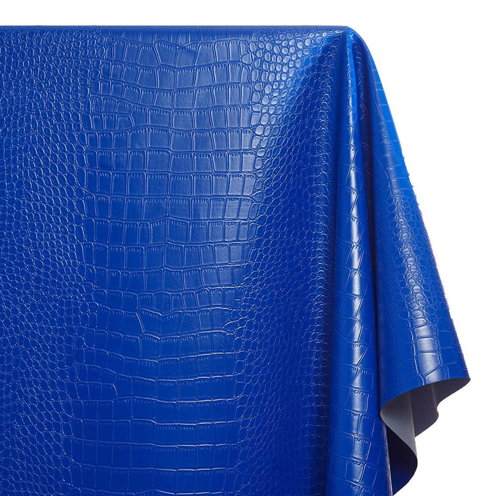 Ottertex® Alligator Vinyl Leather is a heavy-duty, water-resistant, and smoothly textured, lustrous fabric. Extruded from cruelty-free 100% polyvinyl chloride leather, also known as PVC leather, this waterproof material displays an embossed alligator scale pattern on the face of the fabric. The stylish design has a vertical and horizontal pattern repeat of 12 inches respectively. Furthermore, Ottertex® Alligator Vinyl Leather features a 100% polyester knit backing that is soft, and adds extra thickness and protection. Measuring 54/55 inches wide, this vinyl leather is 0.85 millimeters thick, has a 680 GSM, and weighs approximately 35.2 ounces per linear yard.