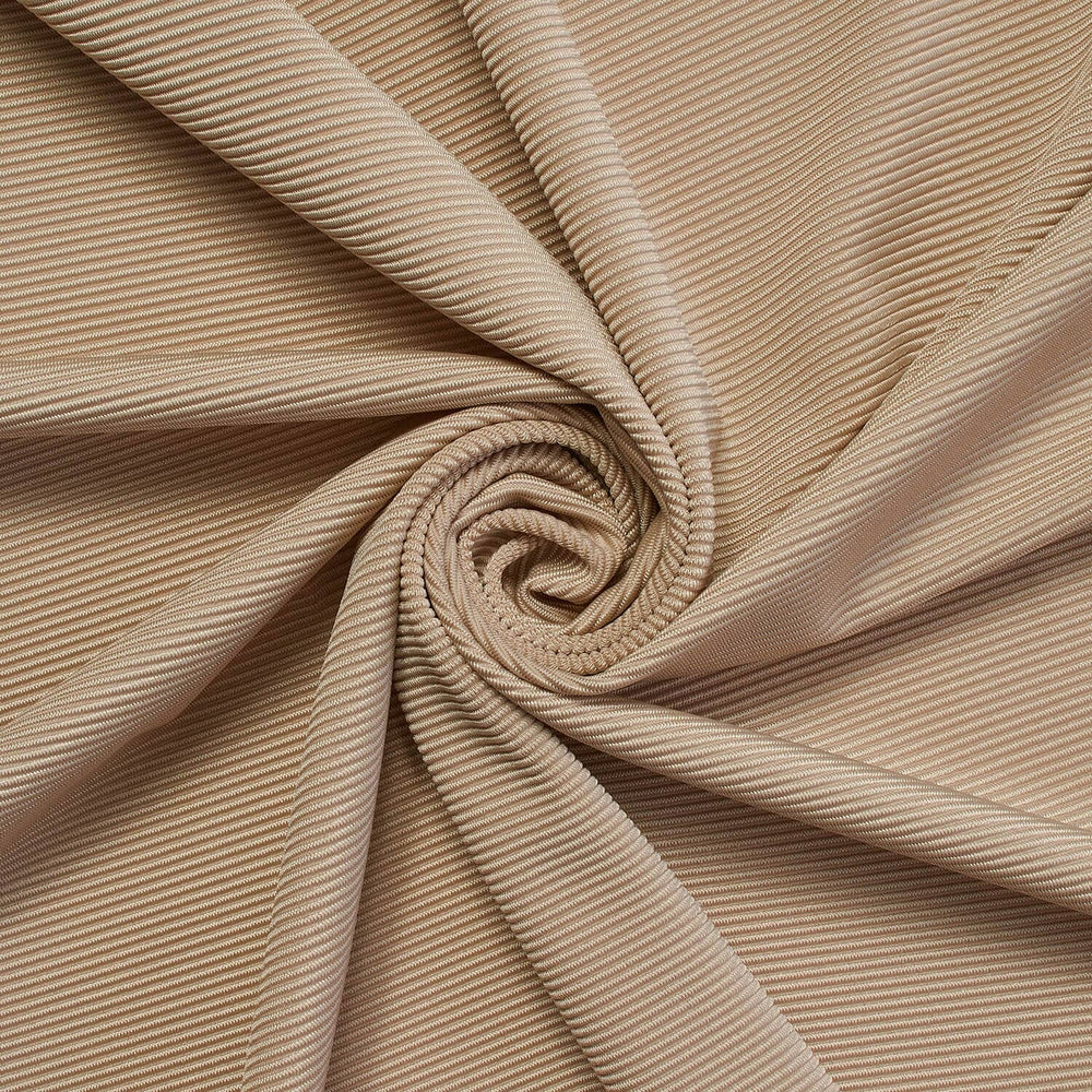 Performance Rib Knit is a stretchy and quick-drying fabric that displays a stylish and textured, ribbed pattern knit into the fabric itself. Sourced from a blend of 82% polyester and 18% spandex, the polyester content of Performance Rib Knit fabric allows the fabric to wick moisture and be wrinkle-resistant, while the spandex allows for a 20% vertical and 10% horizontal stretch. This fabric is knit in a ribbing style, meaning it features a horizontally lined pattern that runs parallel to the selvedge on its face, but the backside of Performance Rib Knit is smooth and soft. A heavyweight and thick fabric, Performance Rib Knit fabric measures 60/61 inches wide, is 0.67 millimeters thick, has a 300 GSM, and weighs approximately 17.8 ounces per linear yard.