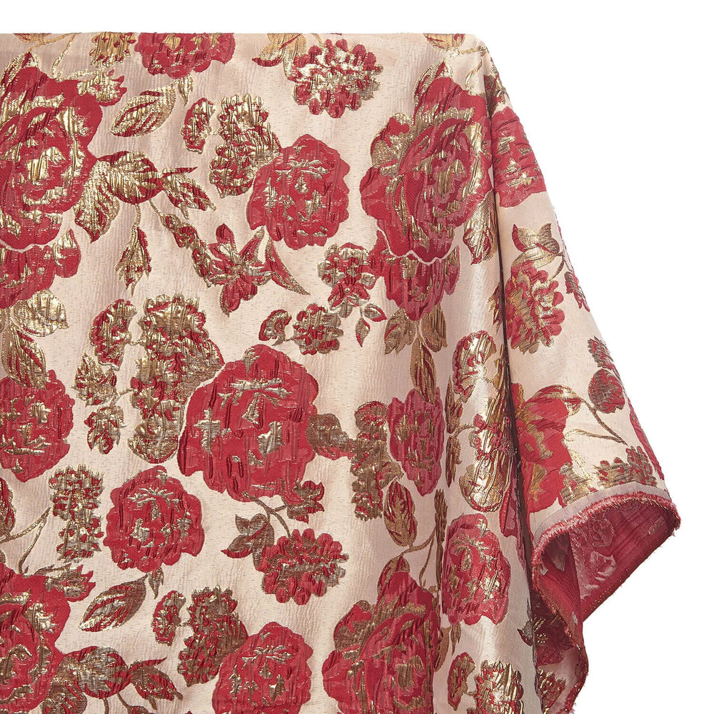 Rose Floral Plain Woven Crinkle Metallic Brocade Jacquard Fabric SV580726 Red Gold A2