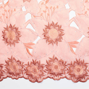 Salmon Anemone Floral Rhinestone Organza Lace