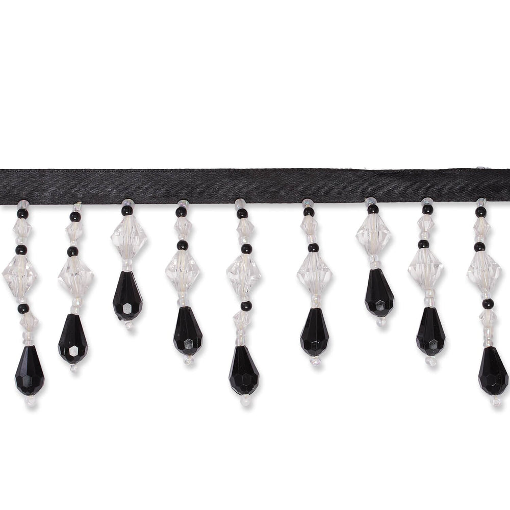 Small Teardrop Beaded Rhinestone Tassel Fringe Trim SV580234 Black / Clear 2