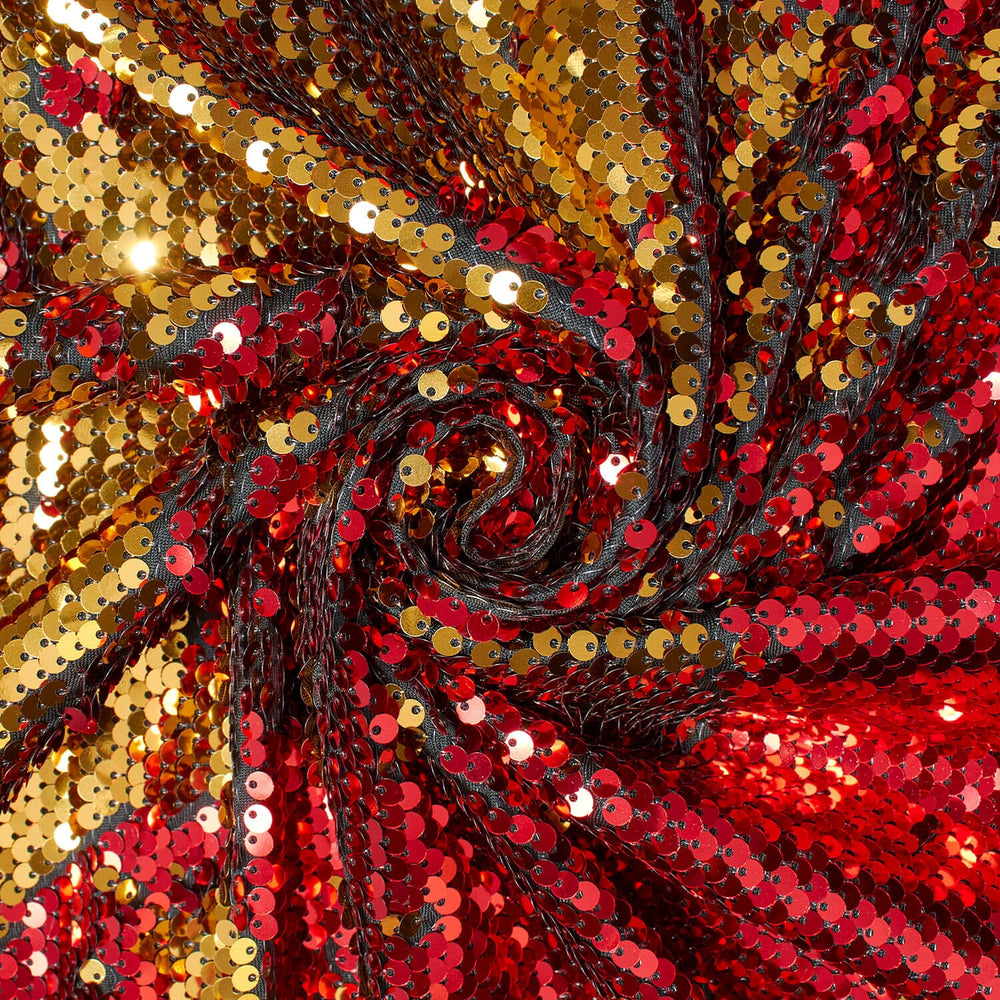 Two Sided Reversible Sequins On Stretch Mesh Fabric SV574633 Gold / Red 2