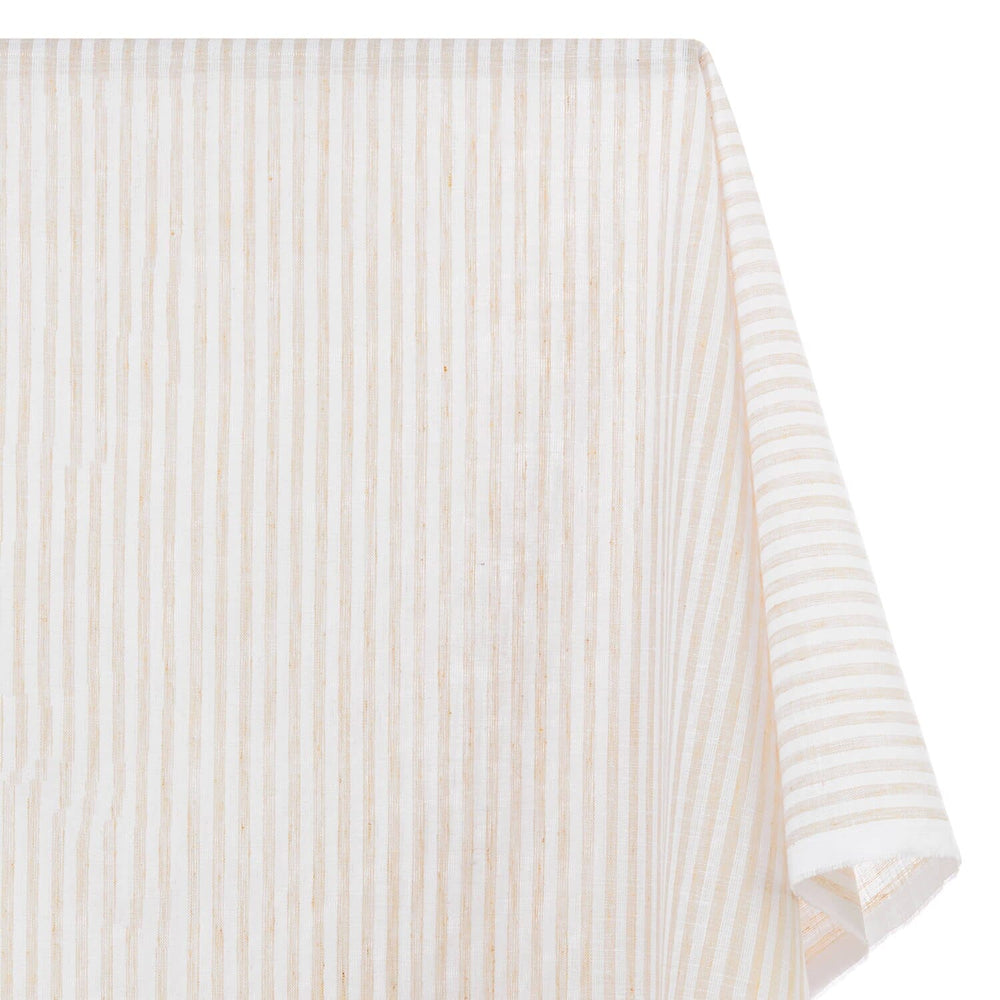 University Stripe Linen-Look is a soft and breathable fabric that displays a brightly colored, striped pattern. Woven in a plain weave style from a blend of 70% Polyester and 30% Cotton fibers, this fabric is made to resemble real linen without the hefty price tag and difficult care instructions. Breathable and slightly sheer, University Stripe Linen-Look fabric measures approximately 58 inches in width, is 0.25 millimeters thick, has a 125 GSM, and weighs about 6.1 ounces per linear yard.