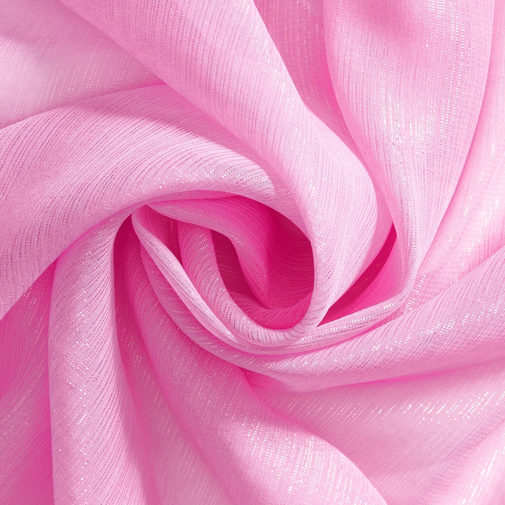 Zari Metallic Chiffon Jacquard fabric is a shiny, sheer, and lightweight fabric Sourced from 100% polyester fibers, this fabric is woven in a jacquard style with thin, highly twisted yarns and shimmering metallic threads, giving it a translucent look, subtle texture, and continuous horizontal (parallel to the selvedge) metallic accents.. Measuring 57/58 inches wide, Zari Metallic Chiffon Jacquard is 0.20 millimeters thick, has a 55 GSM, and weighs approximately 3 ounces per linear yard.